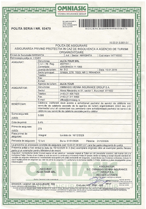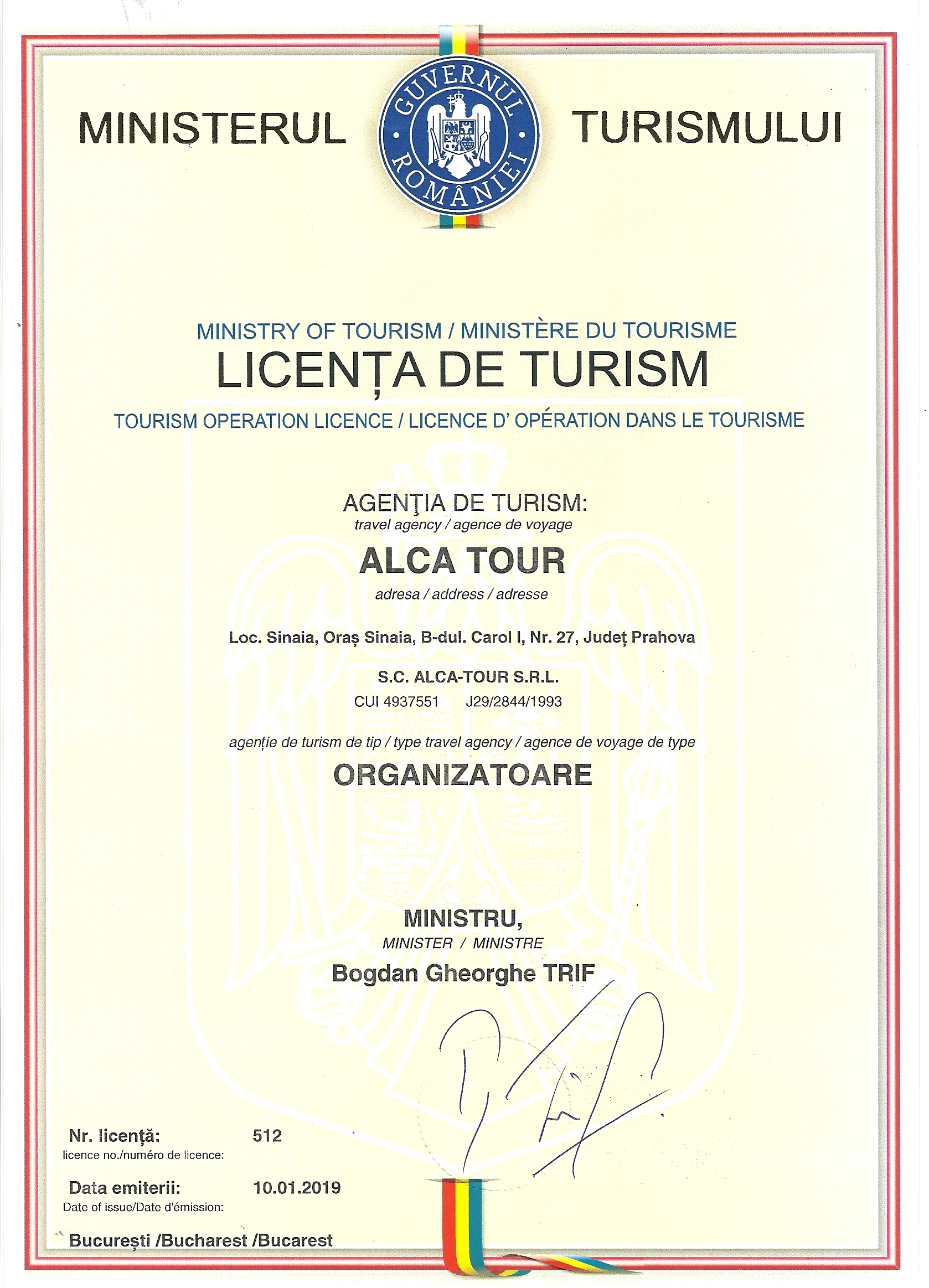 Agentia de turism ALCA TOUR cu sediul in Sinaia are placerea sa va puna la dispozitie serviciile sale pentru inceputul unei colaborari de lunga durata, caracterizata de profesionalism.